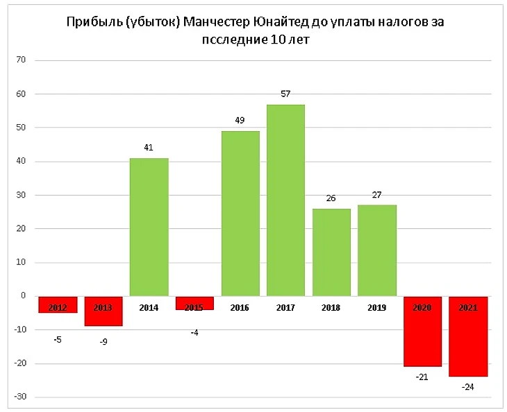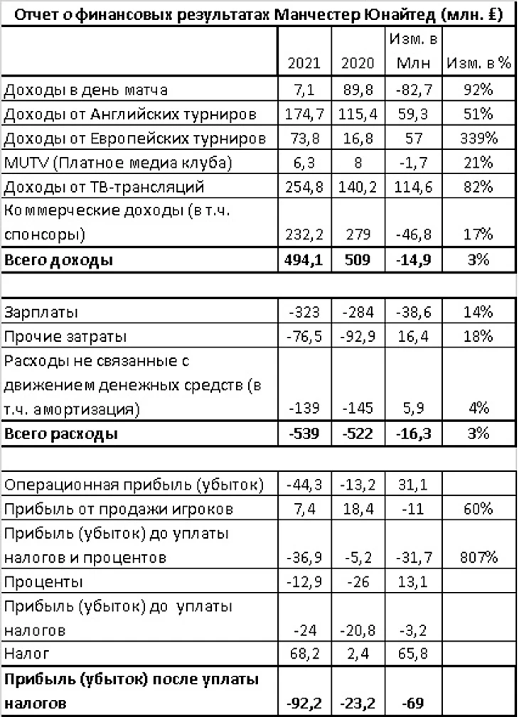 Исходя их этих данных мы видим, что в один из самых сложных, с финансовой точки зрения, периодов, убытки МЮ составили всего 24 млн. фунтов, что меньше чем у 15 клубов АПЛ по итогам сезона 19/20, в котором пандемия пришлась, по большей части, лишь на весеннюю часть сезона.