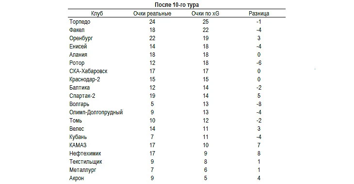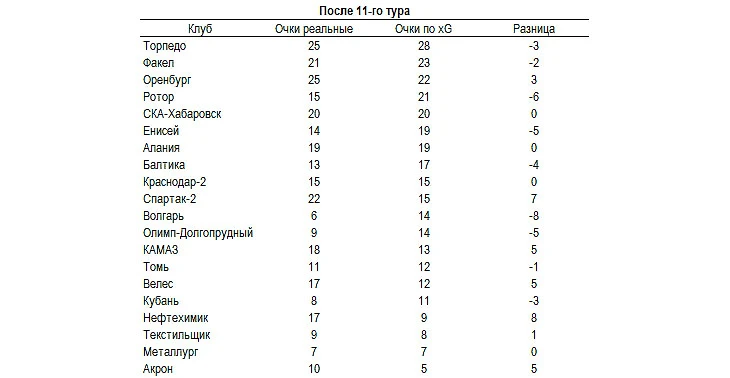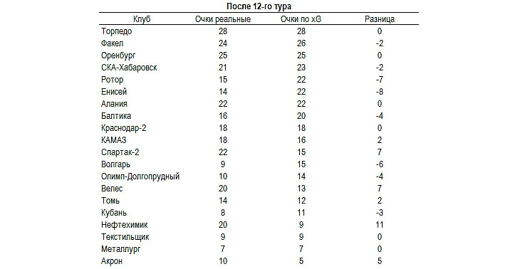 «Торпедо» - лидер, «Факел» - второй, «Оренбург» - третий. xG-таблица первенства ФНЛ после 12-ти туров