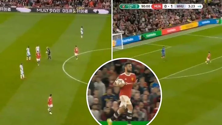 Вчера ( 22 сентября ) Манчестер Юнайтед потерпел поражение от Вест Хэма ( 0:1 ) в рамках третьего раунда Кубка Лиги . «Дьяволы» потерпели 2 поражение за 3 матча ( до этого от Янг Бойз в ЛЧ ) , однако в матче произошёл один забавный момент с участием Бруну Фернандеша .