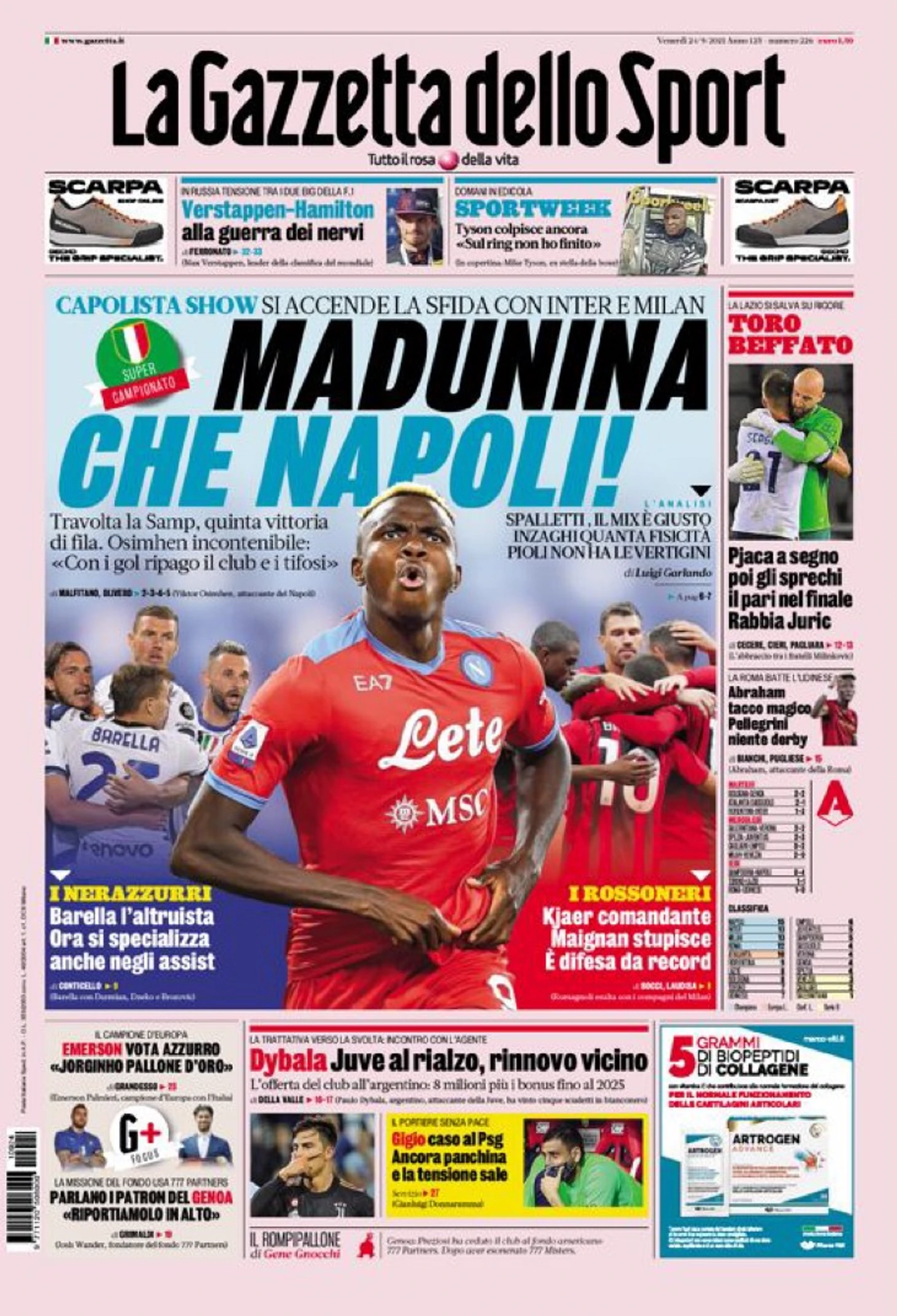 Мадунина, каков «Наполи»! Заголовки Gazzetta, TuttoSport и Corriere за 24 сентября