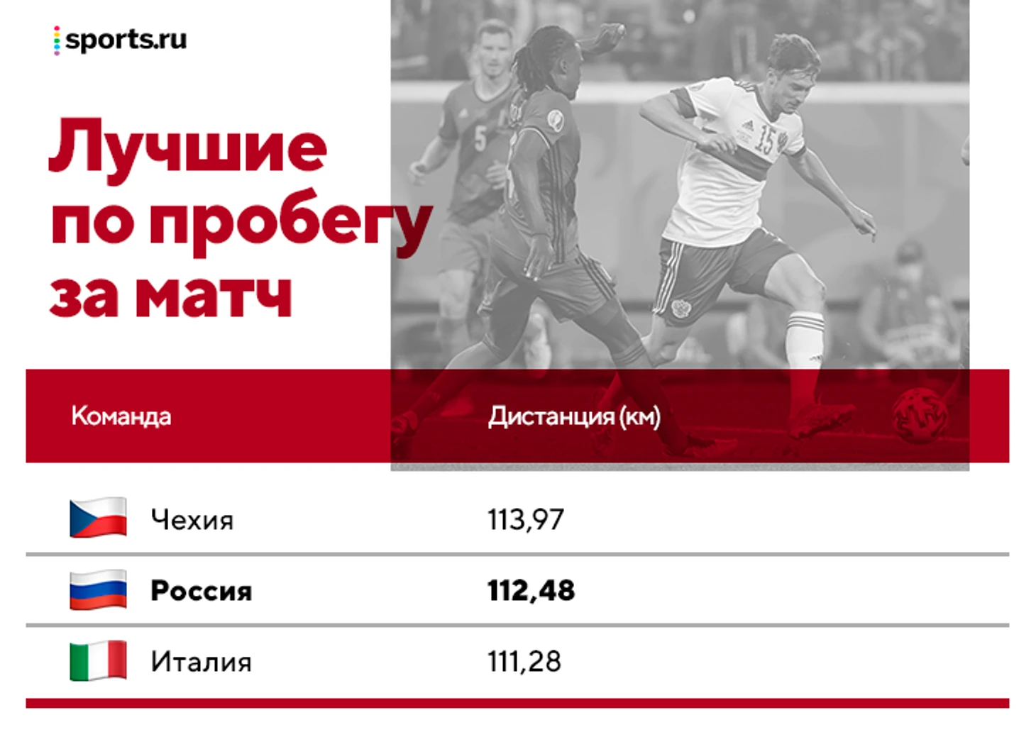 Россия несколько раз упоминается в части, где анализируется пробег. Чтобы команды были в равных условиях, из этой части исключены данные по дополнительному времени у команд, которые с ним сталкивались. Здесь у России впечатляющее второе место: