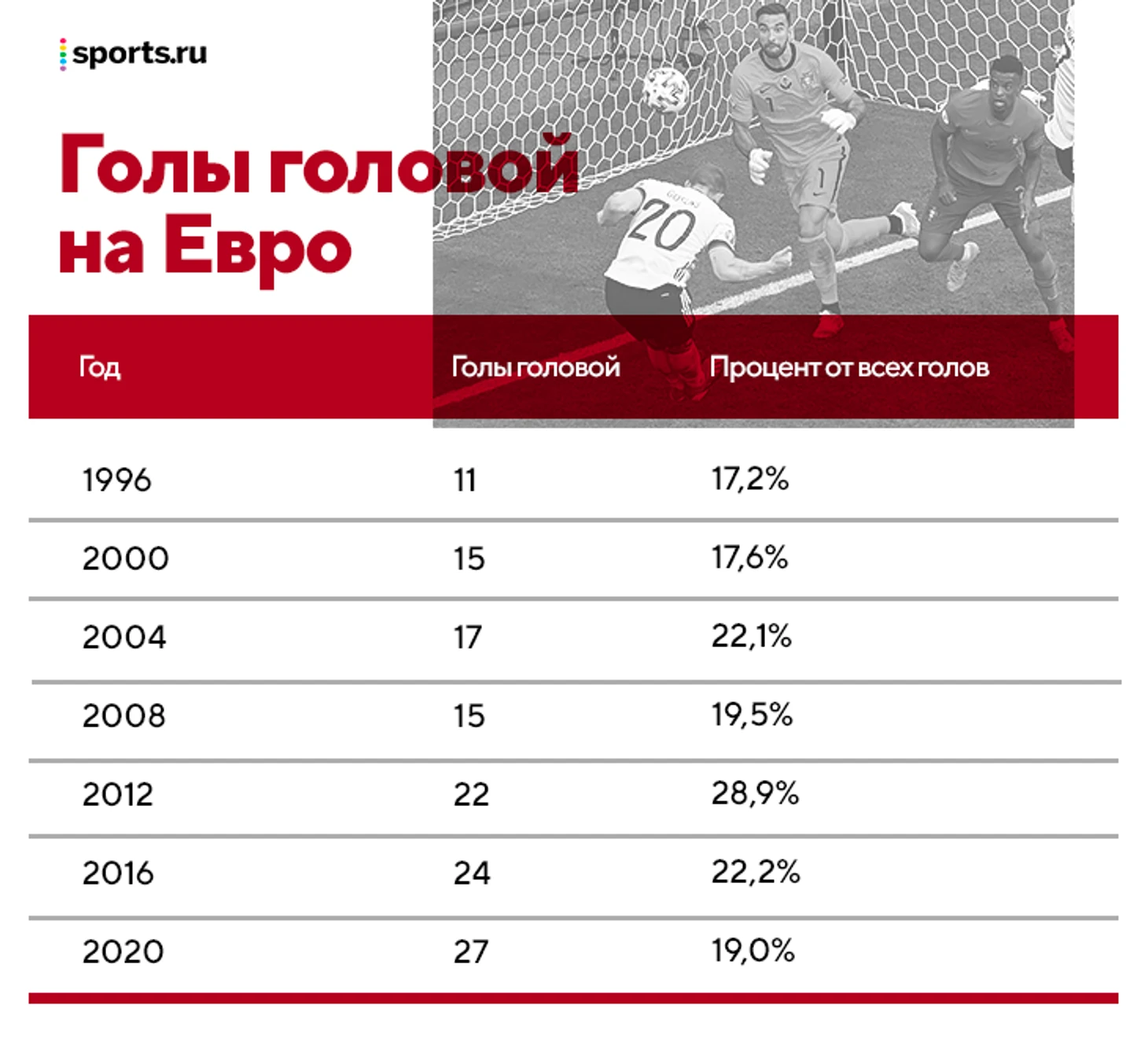 Описанные тенденции хорошо дополняются на первый взгляд контринтуитивным фактом – важность навесов растет, а вот пропорция голов головой сокращается. На самом деле в сочетании с типологией подач это логично – цели подач стали более широкими, чем просто нахождение опасного нападающего-столба в штрафной.
