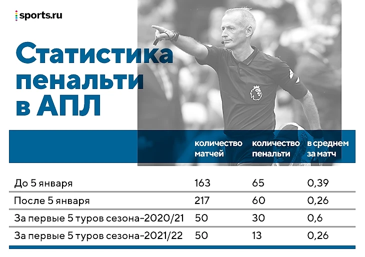 • В этом сезоне правила чуть изменились. Глава судейского комитета Майк Райли сказал, что теперь «легких» пенальти будет меньше: арбитры оценивают не только наличие контакта, но и контекст. Например – мог ли футболист устоять на ногах? Эффект уже есть.