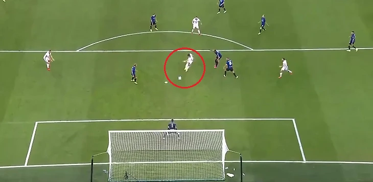 Эпизод случился за 15 секунд до гола. «Интер» попытался сохранить мяч, но потерял его, запустив атаку «Аталанты» недалеко от штрафной.