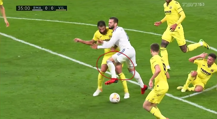 Судья сказал игрокам, что фол произошел за пределами штрафной, но повторы доказывают, что это не так.