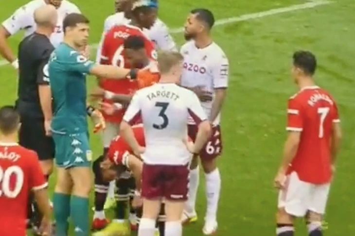 Тут началось представление вратаря «Виллы» Эмилиано Мартинеса. Он попробовал психологически надавить на соперника. Кипер подошел к группе футболистов «МЮ», собравшейся у точки, и начал настойчиво предлагать Бруну передать право пробить Криштиану Роналду.