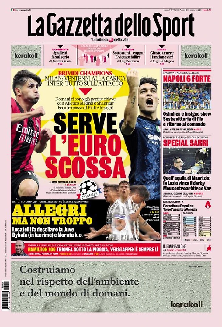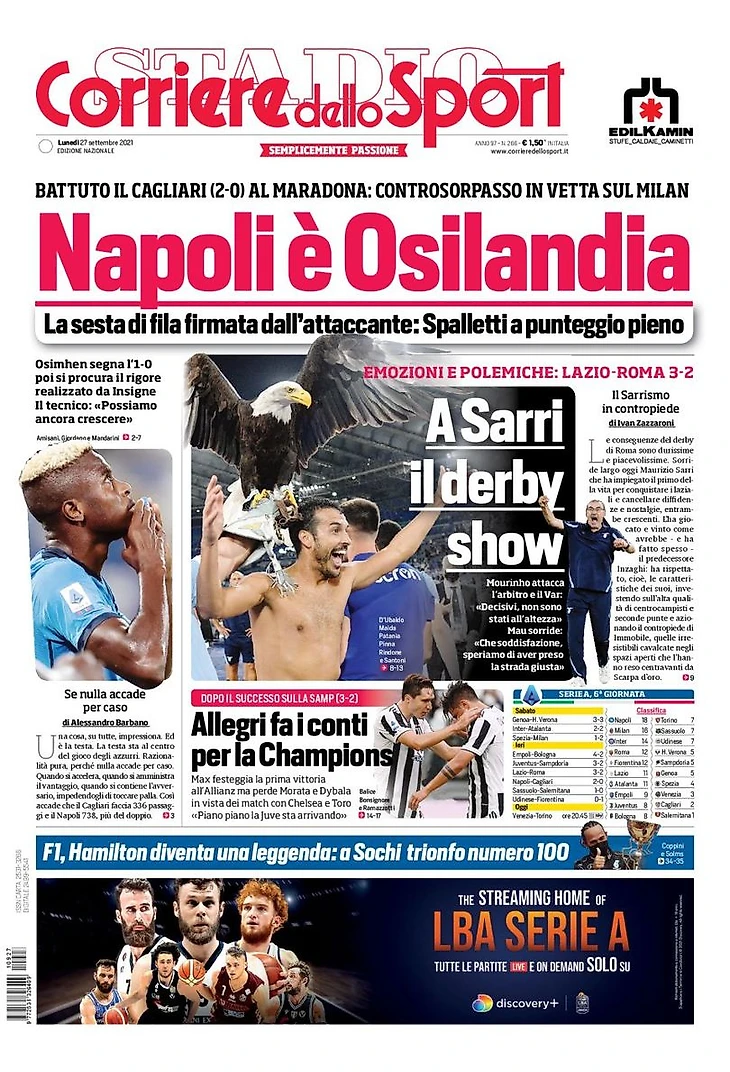 «Наполи» – это Осиландия. Заголовки Gazzetta, TuttoSport и Corriere за 27 сентября