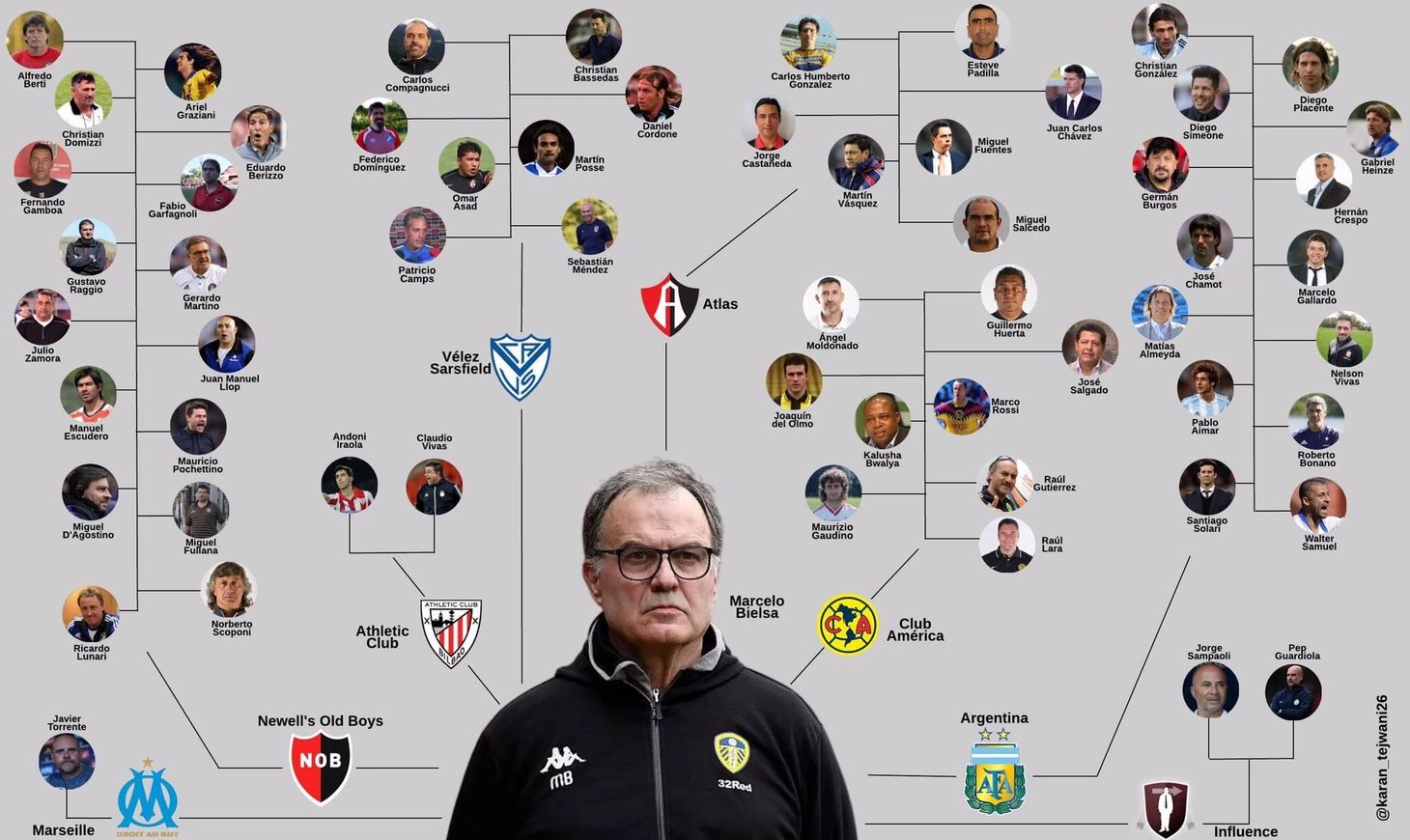 Парадокс Бьелсы в том, что без большой трофейной коллекции (хотя в ней есть главный на территории РФ футбольный кубок – Олимпиада-2004) он вдохновляет и плодит последователей. Свежее исследование The Telegraph показало, что из 280 игроков, которые работали с Марсело и уже завершили карьеру, 163 стали тренерами. Главные из тех, кого он вдохновил, собраны на этой картинке.