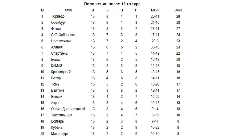 Два поражения кряду, 1:2 дома от «Балтики» и 0:3 в гостях от «Факела», отбросили «Спартак-2» с третьего на седьмое место. «Томь», наоборот, не проигрывает три тура, а два последних матча выиграла – в гостях у «Енисея» (3:2) и дома у «Кубани» (2:1).