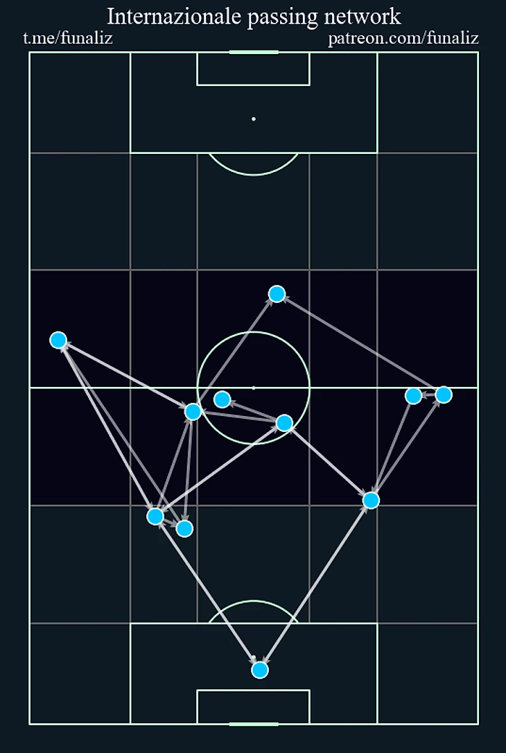 Перформанс "Интера" при всех ранее известных вводных (потеряли Конте, Лукаку и Хакими, серьёзные перестроения) впечатляет. Лучше всего впечатления можно закрепить при помощи карты наиболее отличающих команду Индзаги от "Аталанты" классов передач.