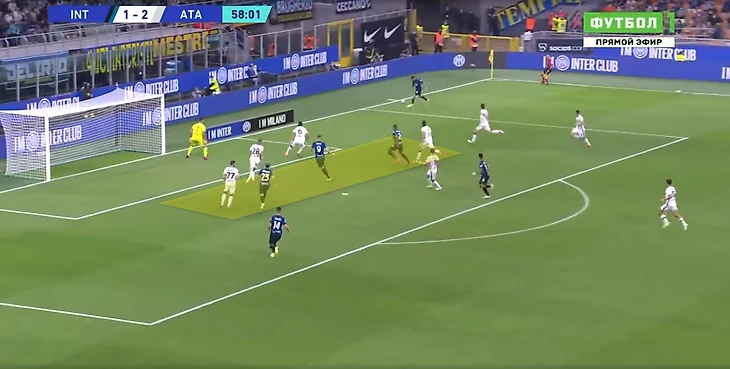 Самая банальная — уязвимость перед контратаками "Аталанты": из-за подключений Димарко внизу "Интер" часто оставлял довольно опасные 2v2 — любой заброс в ту сторону таил потенциальную угрозу. Второй момент — Дамфрис не очень здорово оборонялся и плохо контролировал пространство за спиной, иногда в его зоны захаживал Иличич, которому лучше предоставлять как можно меньше свободы.