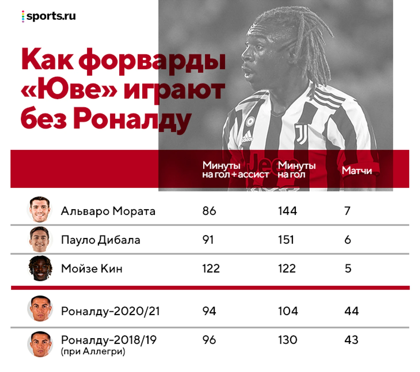 В общем, мифический дефицит 30 голов за сезон пока не проявился (но общие выводы о том, как туринцы пережили продажу, делать рано: Рон показывал такие цифры на дистанции, а его наследники – только на старте). Возможно, «Юве» недосчитается остроты в будущем, совершенно точно потеряет в качестве ротации, но в этом смысле вопрос будет не в нехватке Роналду, а в его торопливом побеге, который не оставил времени на покупку сопоставимого форварда. Но это будущие трудности, а пока констатируем: на стартовом отрезке уход Рона повлиял только в плюс. Проблемы не из-за него.