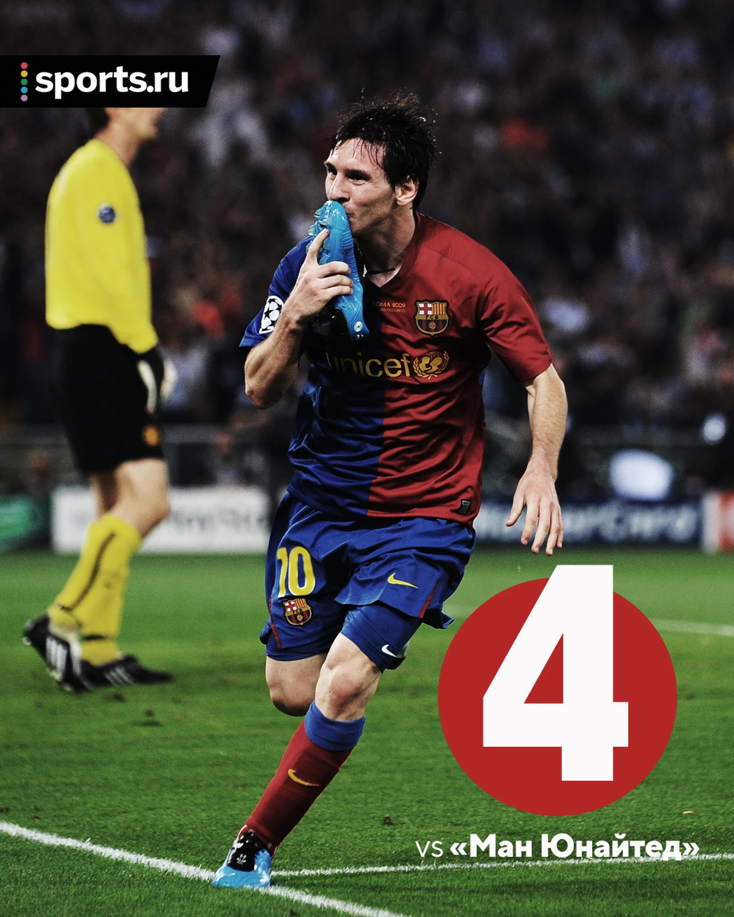 Еще четыре гола от Месси получил «МЮ». Два из них забиты в финалах ЛЧ.