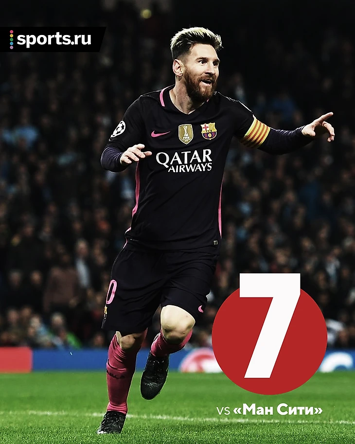 Дальше в списке жертв Месси идет как раз «Ман Сити». Здесь у Лео абсолютный баланс: семь матчей и семь голов. При этом три из них он забил в одном матче – в октябре 2016-го Месси раздавил «Сити» Пепа на «Камп Ноу».