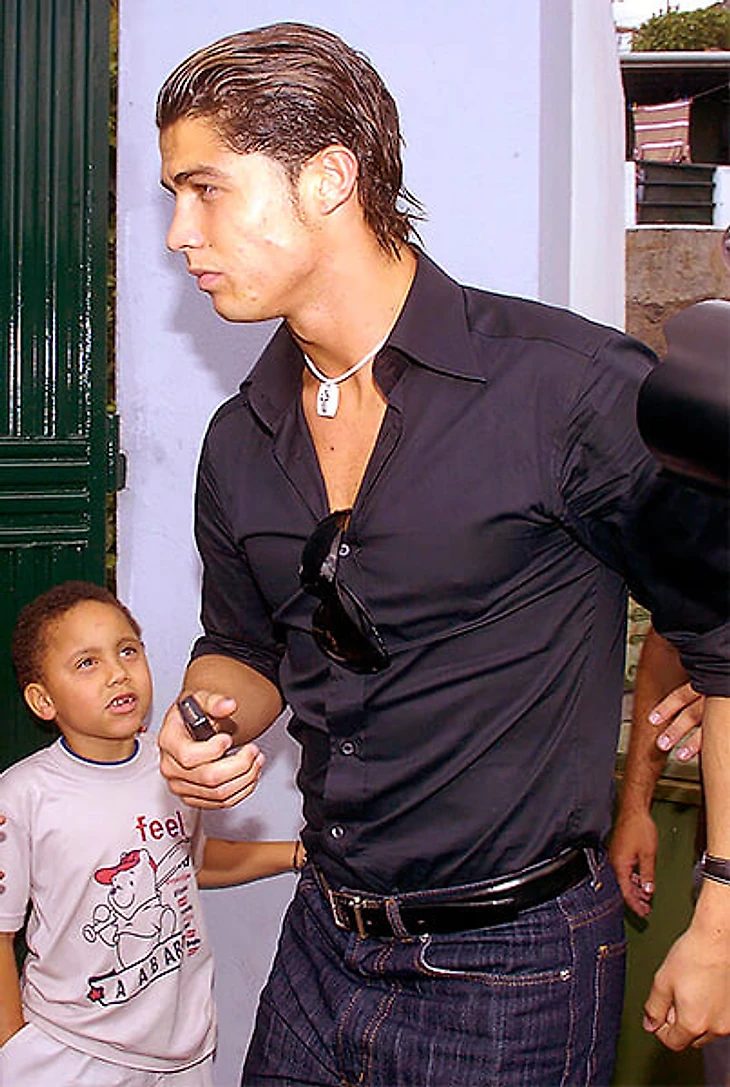 Путь Криштиану в «Манчестер Юнайтед» тоже начался со свитера. Только не теплого и более яркого. В августе 2003-го 18-летний португалец приехал подписывать контракт с «МЮ» в цветастом лонгсливе с черными рукавами от итальянского люксового бренда Versace.