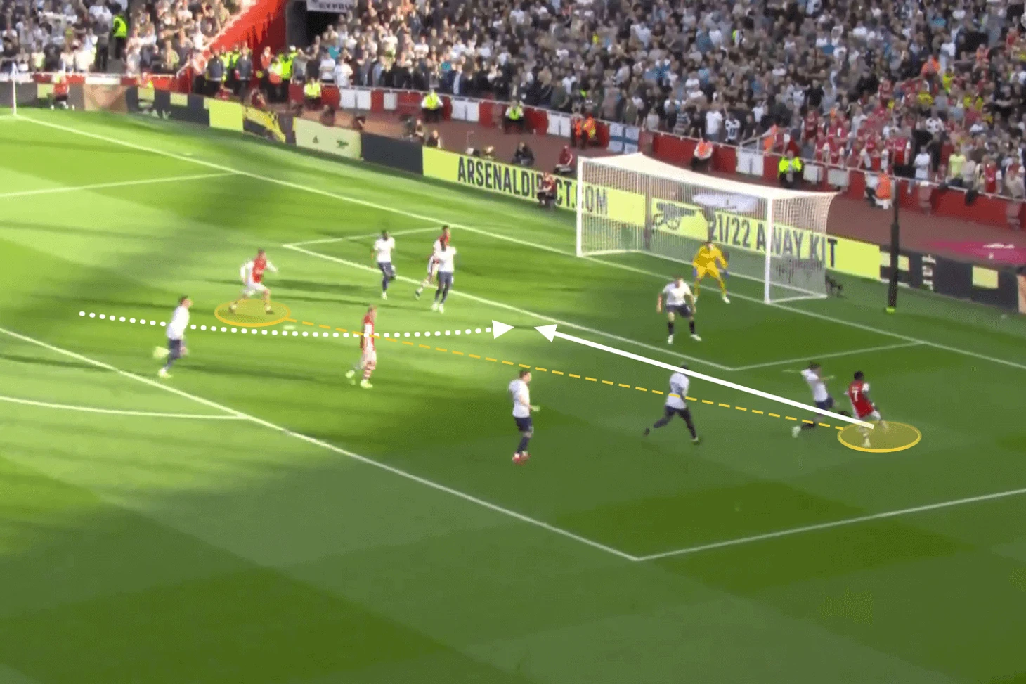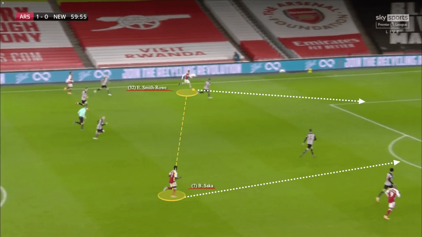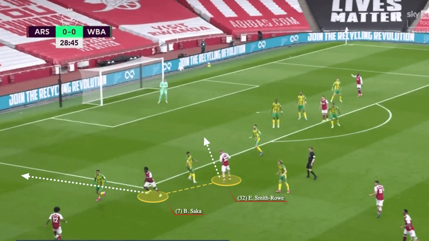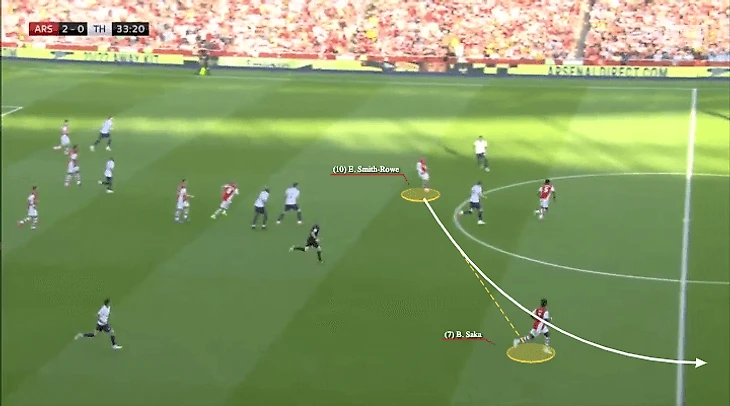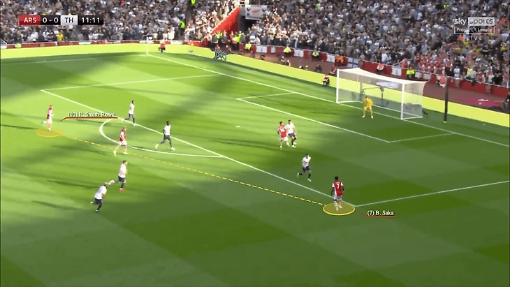 Сака оставалось лишь ускориться и открыться под передачу Смит Роу, что он с успехом сделал.