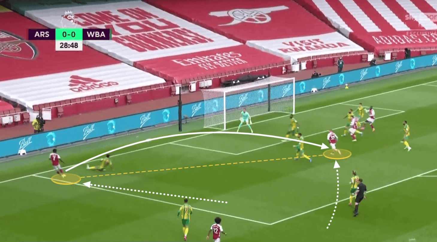 Вспомним гол канониров в ворота «ВБА» в заснеженном гостевом матче прошлого сезона. Тогда Сака и Смит Роу поменялись позициями.