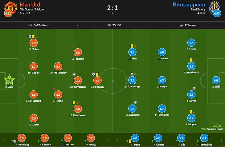 Оценки игроков МЮ в матче с Вильярреалом
