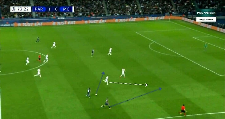 Мяч у Верратти. Он может развить опасную атаку. Но никто из игроков Сити не контрпрессингует - все возвращаются обратно на медленной скорости. Возможно, игроки подустали - всё же 75 минута матча, но всё же, видеть такое у Сити - страшно.