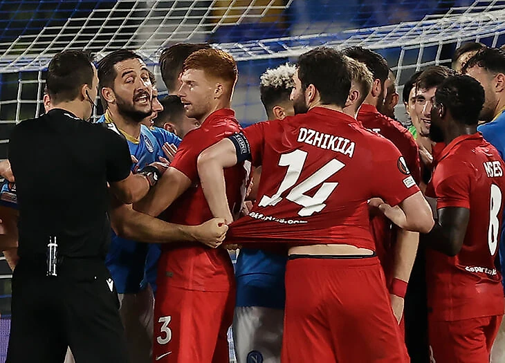Второй тайм пока сложился комфортнее: «Спартак» вырвал волевую победу, а единственный нервный эпизод для арбитра – отмена гола «Наполи» из-за офсайда. Конечно, случилось и удаление Кофрие, но никаких вопросов к судье нет.