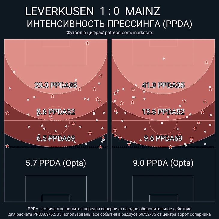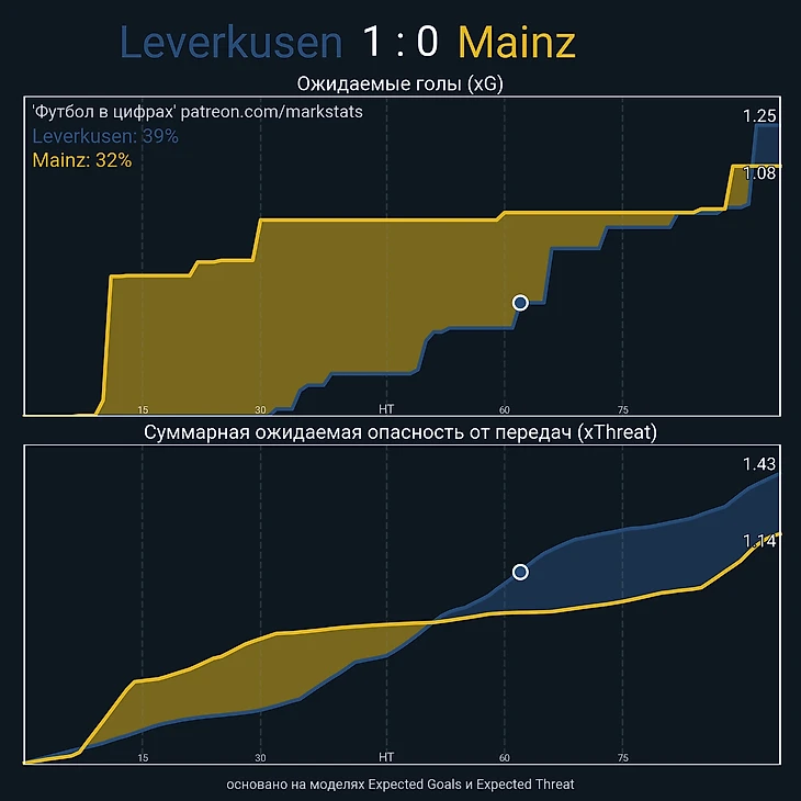 Байер Леверкузен 1:0 Майнц ▪ Ожидаемые голы (NPxG): 1.25 - 1.08