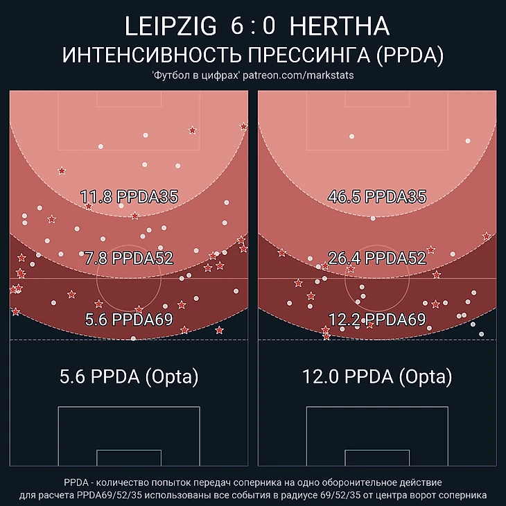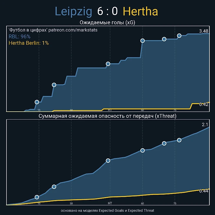 РБ Лейпциг 6:0 Герта ▪ Ожидаемые голы (NPxG): 2.72 - 0.42