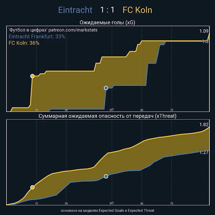 Айнтрахт 1:1 Кельн ▪ Ожидаемые голы (NPxG): 1.0 - 1.09