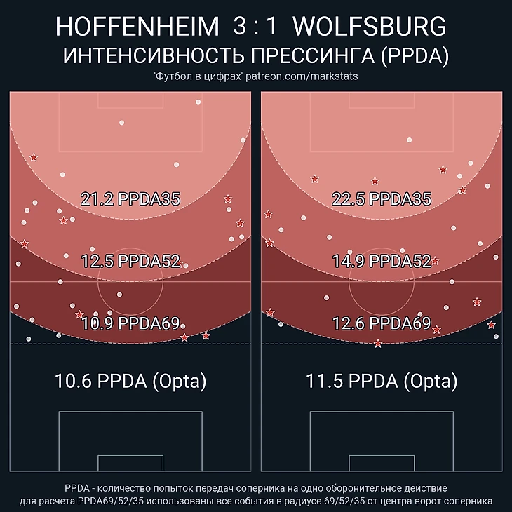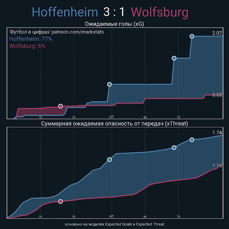 Хоффенхайм 3:1 Вольфсбург ▪ Ожидаемые голы (NPxG): 2.07 - 0.65