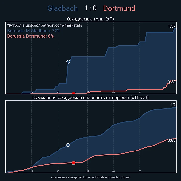 ▪ Ожидаемые голы (NPxG): 0.76 - 0.27