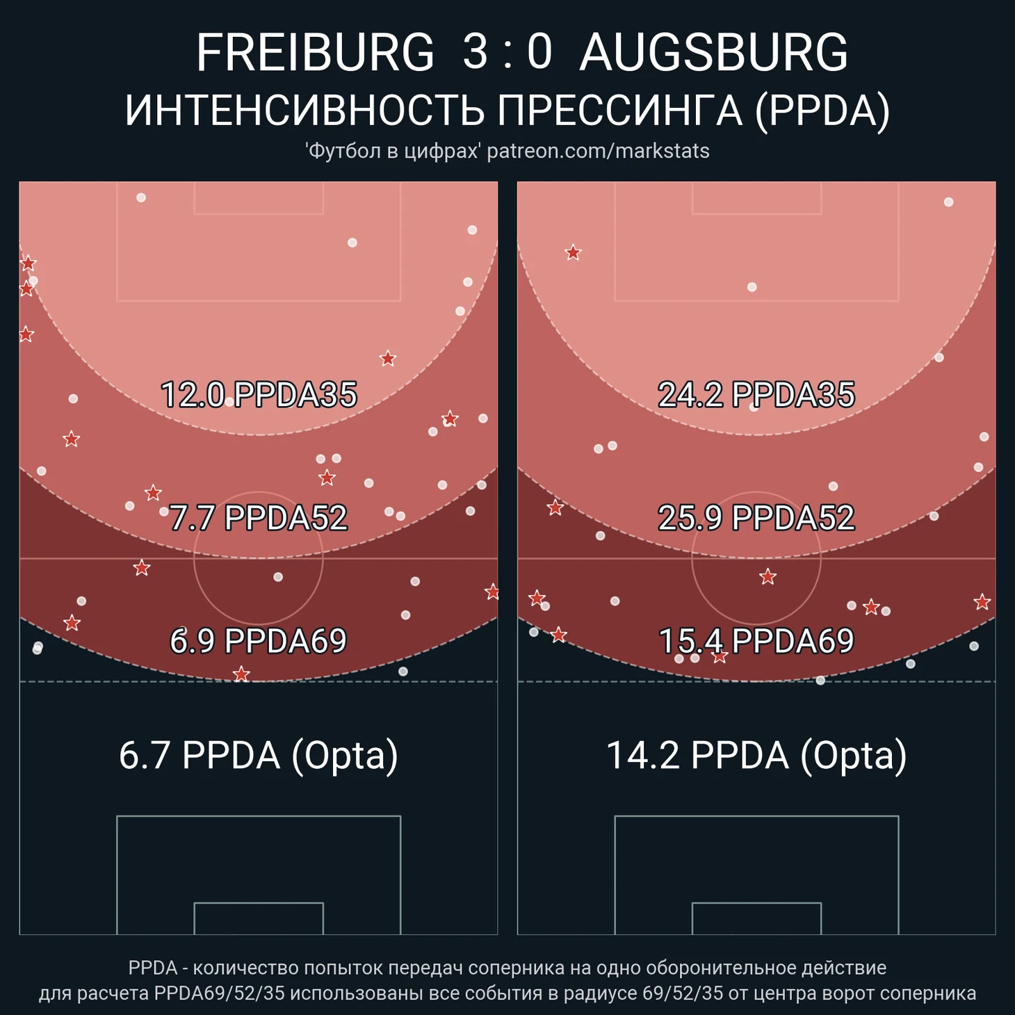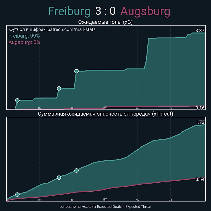 Фрайбург 3:0 Аугсбург ▪ Ожидаемые голы (NPxG): 2.61 - 0.16