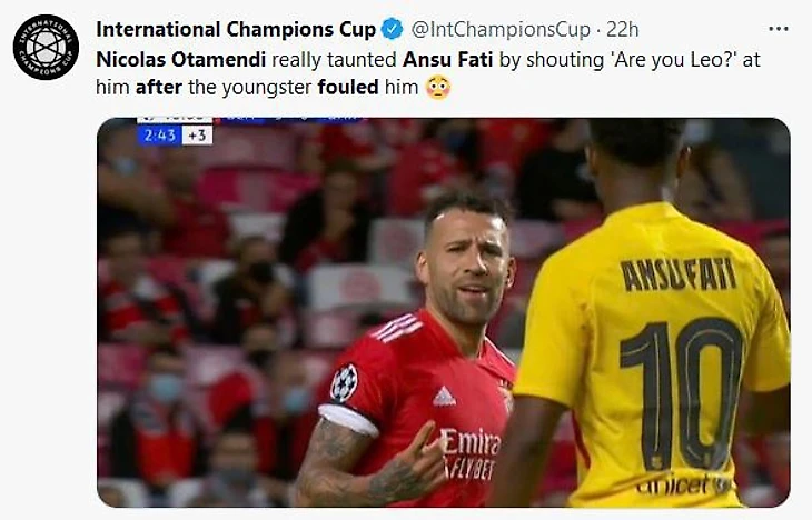 В частности, Николас Отаменди вступил в перепалку с юным Ансу Фати, когда игрок «Барсы» бросился в подкат против него на последних минутах игры.