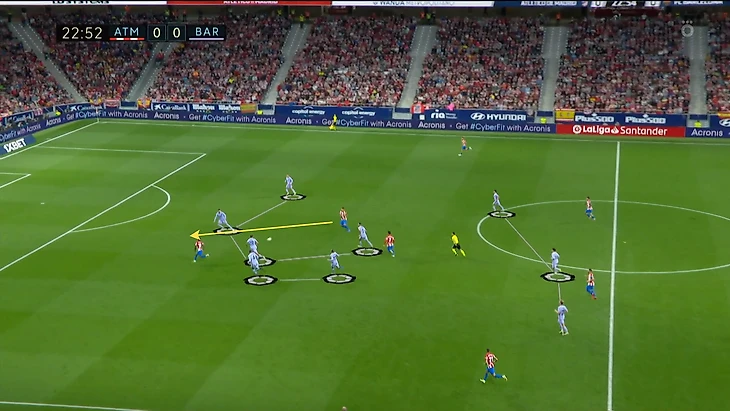 Действия Бускетса и Нико в моментах с голами «Атлетико» также оставляют вопросы: из-за расположения на футболистов на одной линии соперник мог буквально в две передачи проходить опорную зону «Барсы». Капитан провёл плохой матч, о чём говорят и визуальные ощущения, и цифры (83.7 % точных передач - очень низкий показатель для Серхио). Во многом это обусловлено неудобной ролью в паре опорных полузащитников.