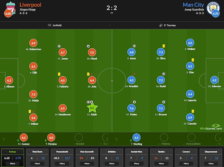 Да, 2 мяча Ливерпуля практически от и до результат индивидуального мастерства Салаха, который, вероятно, провел один из лучших матчей в карьере против грозных соперников, но все это было бы попросту невозможно в первом тайме. Ливерпуль вступал в борьбу на любом участке поля, вынуждая Манчестер Сити ошибаться.