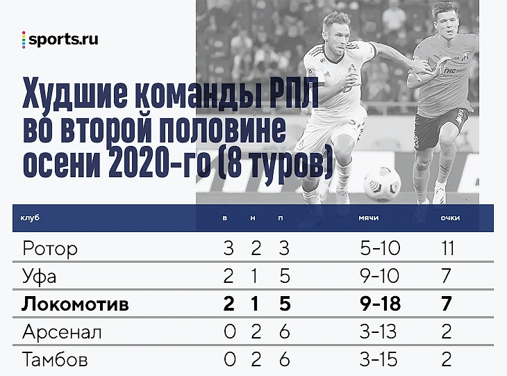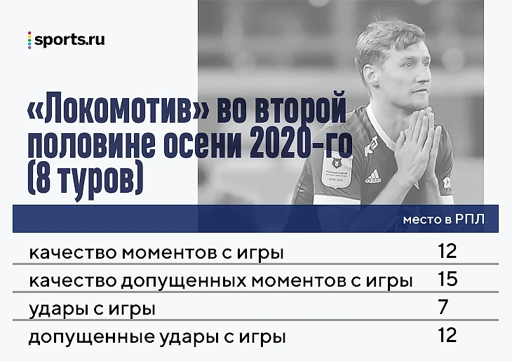На первом этапе сезона-2020/21 был важен и график – до середины октября у «Локомотива», как и у большинства клубов РПЛ (исключения – те, кто играл в квалификации еврокубков), был только один мидвик. «Локомотив» не обходился без потерь (сначала травмировался, а потом ушел Алексей Миранчук, порвал кресты Баринов), но после них даже поднимался по таблице.