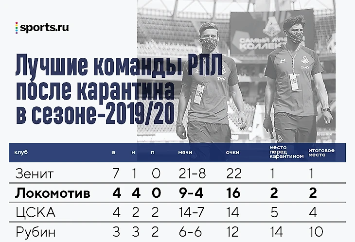 Со стартом в России Николич справился. К летней доигровке сезона-2019/20 «Локомотив» подошел наравне с «Краснодаром», опережая соперника только по дополнительным показателям. В конце сезона москвичи опередили команду Мурада Мусаева на пять очков. В восьми посткарантинных турах в РПЛ не проиграли лишь две команды – «Зенит» и «Локомотив».