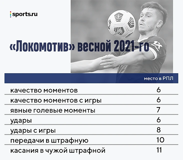 По атакующим показателям «Локо» не входил даже в топ-5 второй части сезона-2020/21.