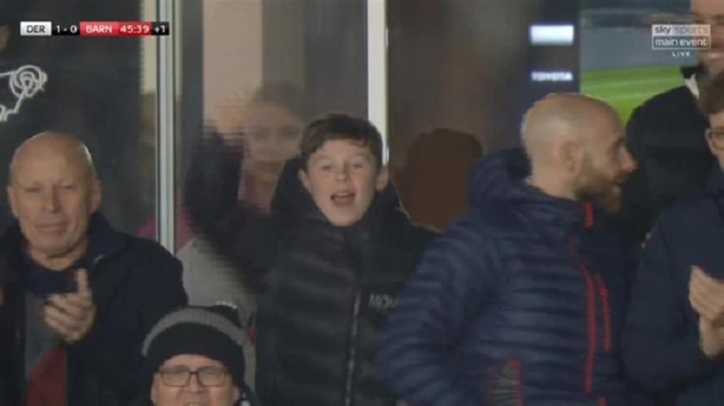 Кай тоже всегда поддерживает отца – вот он радуется за него в дебютном матче в футболке «Дерби».