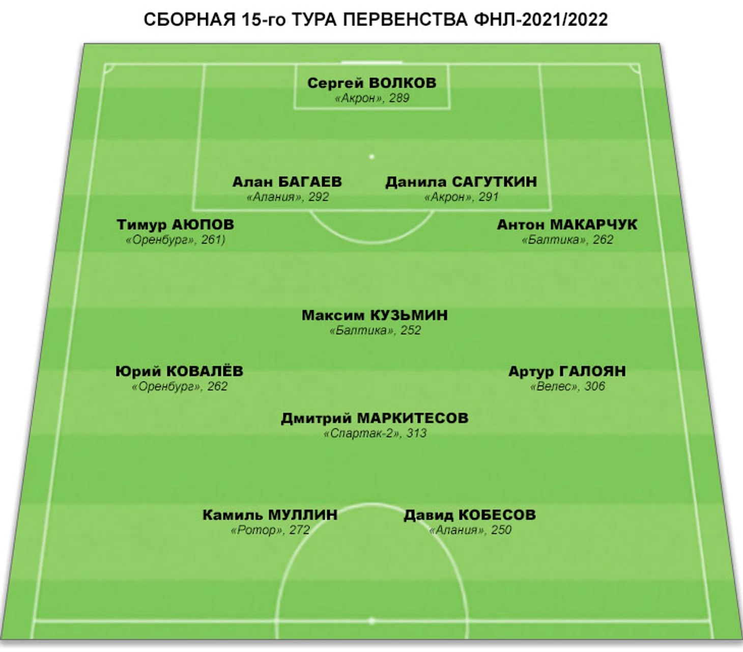 Центральные защитники: Алан Багаев («Алания», 292), Данила Сагуткин («Акрон», 291), Василий Черов («Факел», 289).