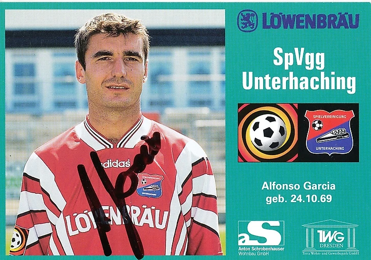 Гарсия хотя и является этническим испанцем, но родился в Леонберге и всю жизнь прожил в Германии. Соответственно, и воспитывался он в духе немецкой футбольной школы. Начинал в конце 80-х в «Биссингене», затем перебрался во «Фрайберг» (не путать с «Фрайбургом»), а позже и в «Унтерхахинг» – судьбоносное решение, хотя сразу таким этот трансфер явно не выглядел. Тем не менее, Гарсия набрал во Второй Бундеслиге в 135-и играх по системе гол+пас 22 балла, и спустя семь лет упорной борьбы, клуб всё-таки вышел в элиту. Правда, такой высокий уровень выступлений оказался Альфонсо не по зубам — всего-то два результативных балла за сезон и статус игрока замены. Для нападающего — просто катастрофическая статистика. Однако, клуб в итоговой таблице занял неожиданно высокое 10-е место, да ещё и как это сделал! Перед последним туром «Бавария» в борьбе за первую строчку отставала на три очка от «Байера», которому предстояла выездная игра с командой испанца. Голкипер «Баварии» Оливер Кан заранее сказал, что они будут надеяться на «Унтерхахинг»: «Это сильная команда с характером, которая всегда полностью отдаёт себя на поле». И это не было лестью: «Мы были очень сильны дома и проиграли только “Кайзерслаутерну” и “Баварии”», — вспоминает Гарсия. В итоге одна баварская команда подсобила другой: «Унтерхахинг» уверенно обыграл «Байер» (2:0), а сама «Бавария» — «Вердер» (3:1).