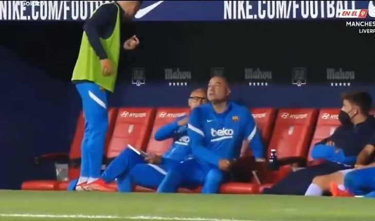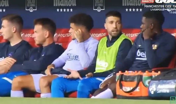 Медицинский штаб попросил Жорди Альбу начать разминаться, чтобы выйти на поле в матче с «Атлетико». Но спустя какое-то время футболисту сказали сесть обратно на место, такое решение вызвало у Жорди недоумение.