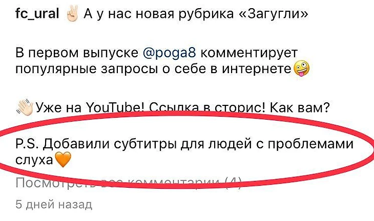 На это нельзя обижаться. А нам, тем, кто слышит – стоит задуматься. Что добавлять субтитры на видео – в общем-то не так уж и сложно. И точно стоит благодарности даже одного болельщика «Урала».