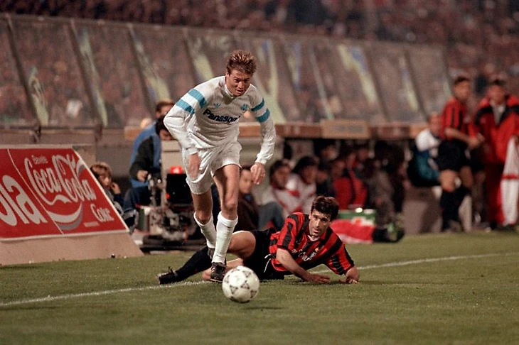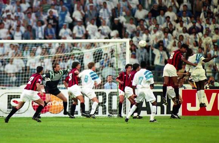 6 марта 1991, первый матч 1\4 кубка чемпионов Милан-Марсель. На 27-й минуте Папен сравнивает счет
