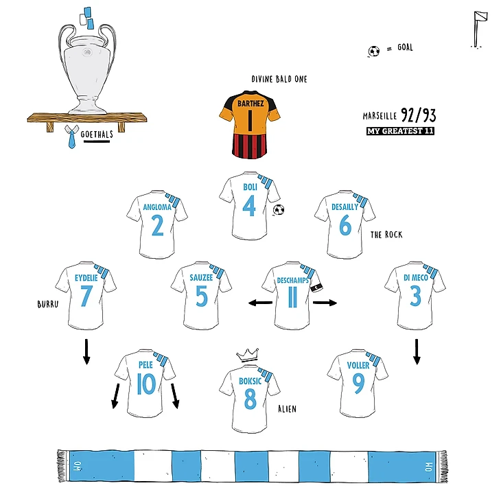 В этом Марселе явно кого то не хватало. Правильно, того, кого итальянцы называют как fantasista, т.е. хавбека, игра которого отличается фантазией и непредсказуемостью. С уходом из команды Криса Уоддла этот пост явно осиротел (Веркрюисс исчез еще раньше, летом 1991). Стиль Марселя образца 1992\93 был характерен обилием фолов и чересчур атлетической игрой. Даже шотландцы в лигочемпионском матче на Айброксе были ошарашены той неимоверной физической силой, с которой им пришлось бороться. А ведь преимущество в силе всегда было как раз на их стороне. Как писал тогда французский журналист Андре Дюкло: «Марсель сегодня не та команда, которую можно любить, если, конечно, вы не обязаны это делать потому, что болеете за нее». Однако эта команда обладала чемпионским характером и умением навязывать сопернику свою игру.