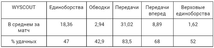Более наглядная статистика по основным статистическим показателям для его позиции: