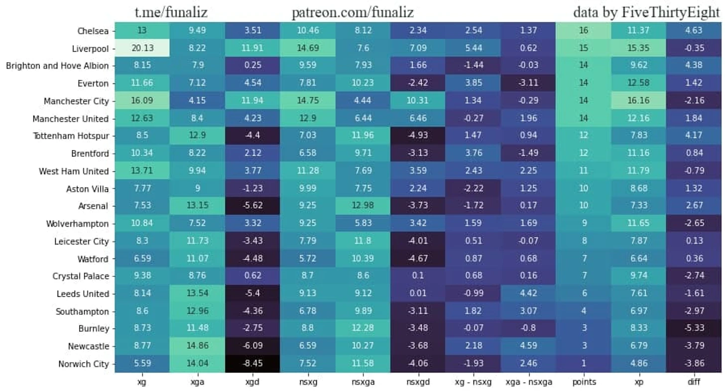 Таблица с продвинутой статистикой по АПЛ. Больше таких таблиц - на Патреоне