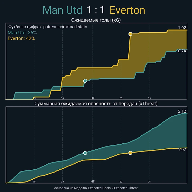 В какой-то степени уместны оговорки на уровень подготовленности контратак "Эвертона", однако у гостей обе карты по конвертациям "светятся" — перебор даже с учётом всех стилистических особенностей и сильных сторон соперника.