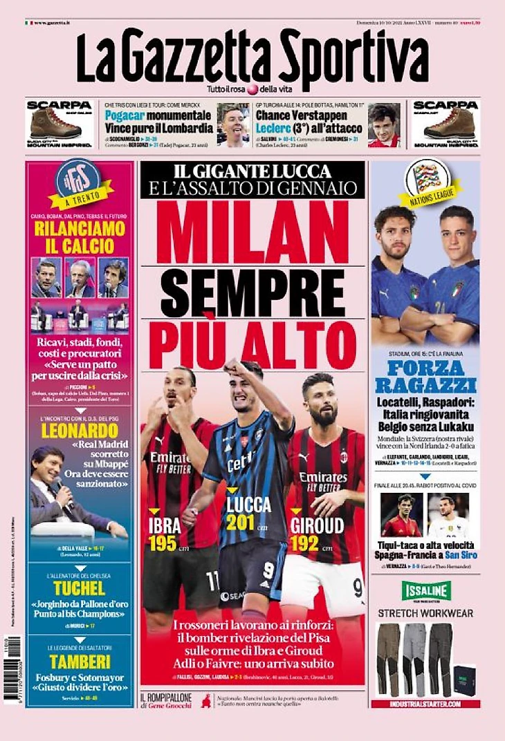 Италия оживает. Заголовки Gazzetta, TuttoSport и Corriere за 10 октября