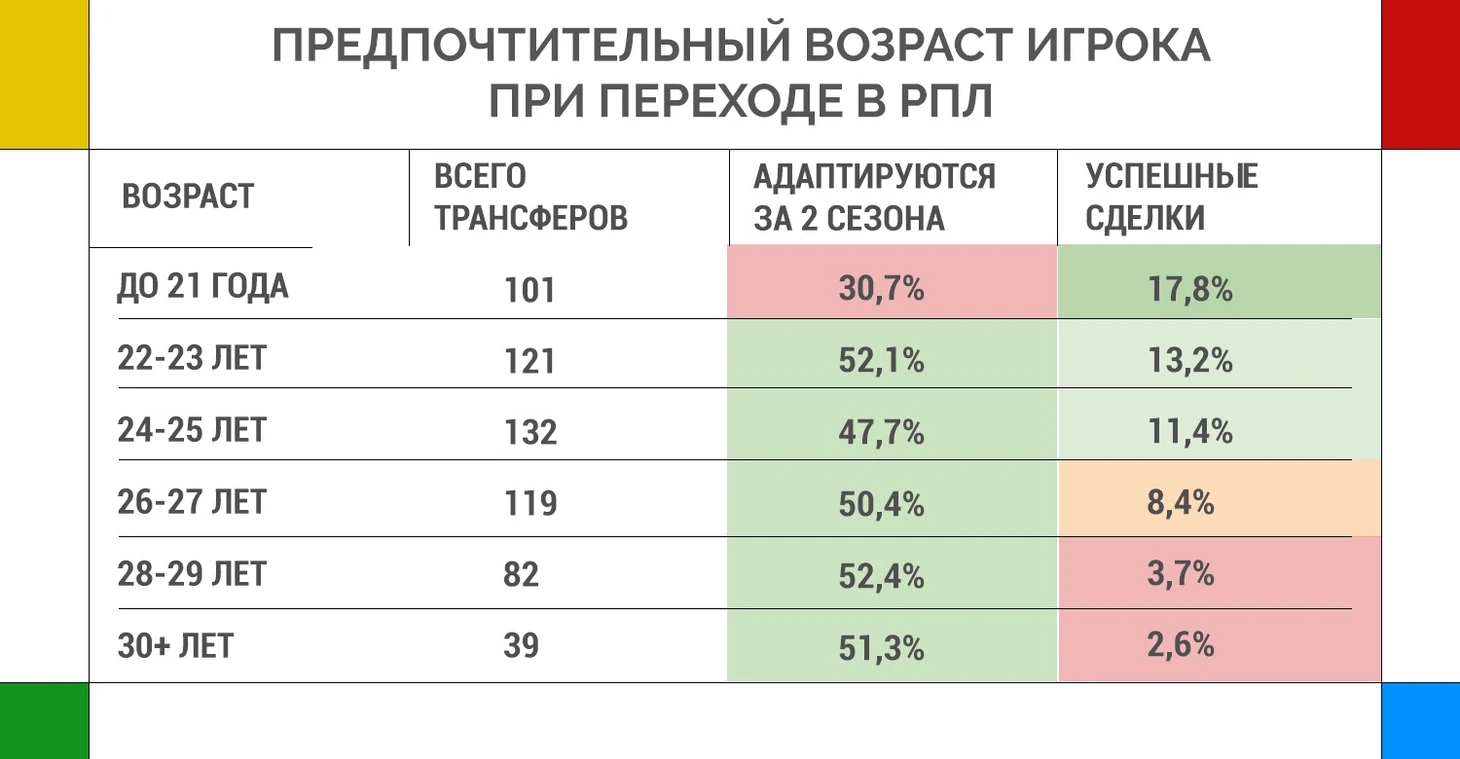 Напоследок, ответим на вопрос: игроки какого возраста более привлекательны для трансферов в РПЛ?