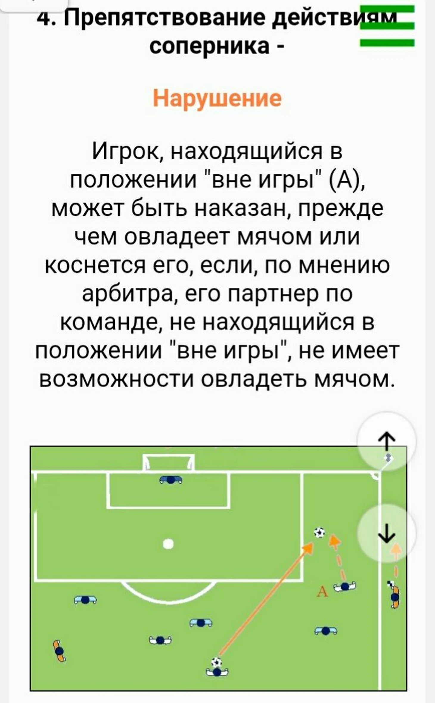 "получает преимущество, играя в мяч или мешая сопернику, когда мяч: