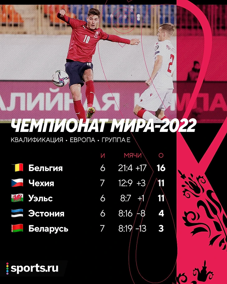 Чехам осталось сыграть только с эстонцами – они уже точно не станут первыми. Им нужно выиграть свой матч и надеяться, что Уэльс наберет максимум три очка в играх с Беларусью и Бельгией (обе – дома). По разнице чехи пока лучше.